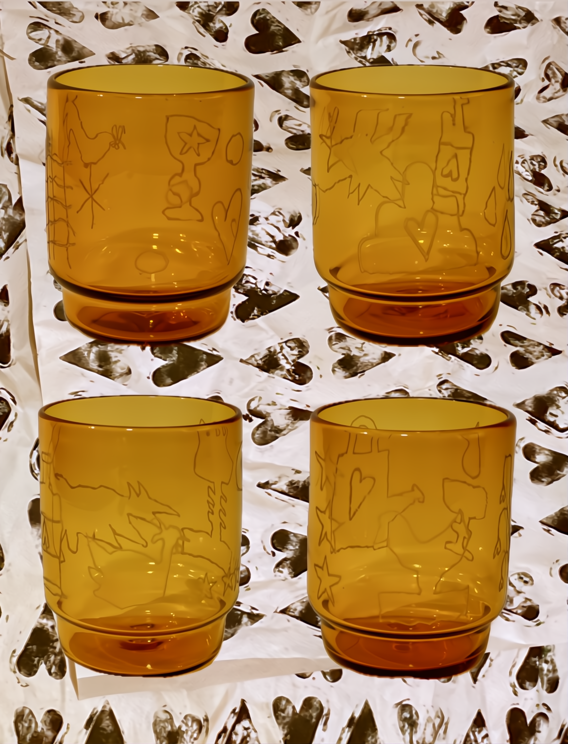 set of 4 interfacing handmade 10 oz. glass tumblers in amber